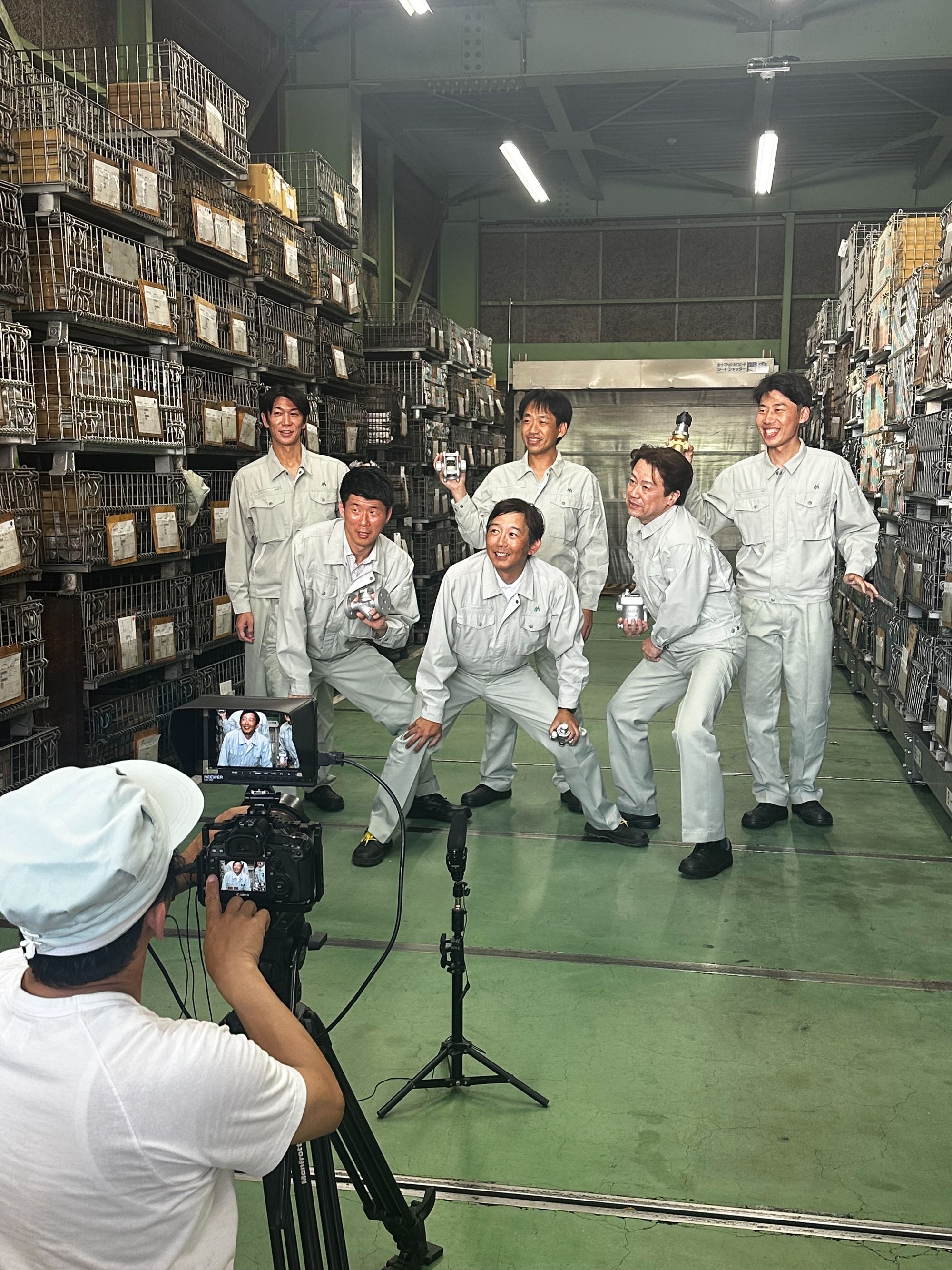 蒸気が噴き出す迫力満点の映像から、すり合わせ作業を行う匠の仕事の様子など、プロによる的確な指示のもと、順調に撮影が進行しました。