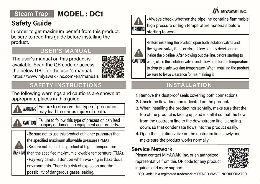4. Steam trap DC1 and Kit products.